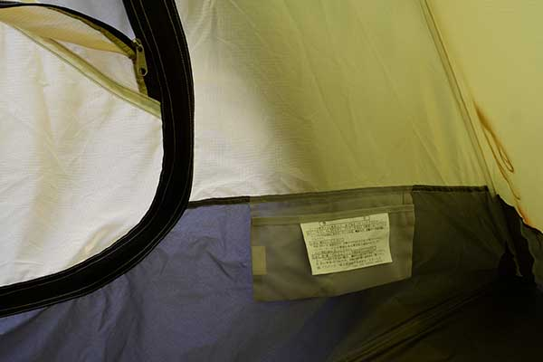 インナーの内側にはポケット、天井にはライトなどが吊り下げられるループ付き。
